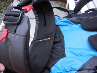 Popruhy jsou spojeny prsním páskem, přezky na prsním popruhu jsou na obou stranách, lze tak popruh odepnout levou nebo pravou rukou. Pokud zrovna nemám prsák zapnutý, dá se nacvaknout na jednu stranu a nepřekáží.