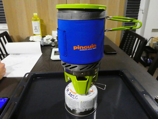 Jednou jsme vařili na PINGUIN ešusu s výměníkem, konkrétně na typu SURPASS. AURA pak má vlastní nádobu s výměníkem. Kombinaci PYRO s výměníkem jsme netestovali, ale hodnoty jsem dopočítal podle výsledků s vařičem SURPASS.