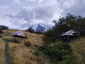 Zbývá dvacet minut do kempu, který se jmenuje... jak jinak než Francés. Místo je pro zřízení tábořiště poněkud zvláštní. Zalesněné svahy Los Cuernos prudce spadají až do jezera Nordenskjöld. Celý kemp je rozptýlený právě v takovém svahu. Recepce, restaurace a sprchy dole, stany všude možně nahoře. Erární stany s nižičkami se skrývají mezi stromy, pro vlastní jsou vyhrazené dřevěné platformy. Obyčejné místo jen tak na zemi se tu prostě nenajde. Mezi kořeny a větvemi vede pár pěšinek a lávek přes potůčky.